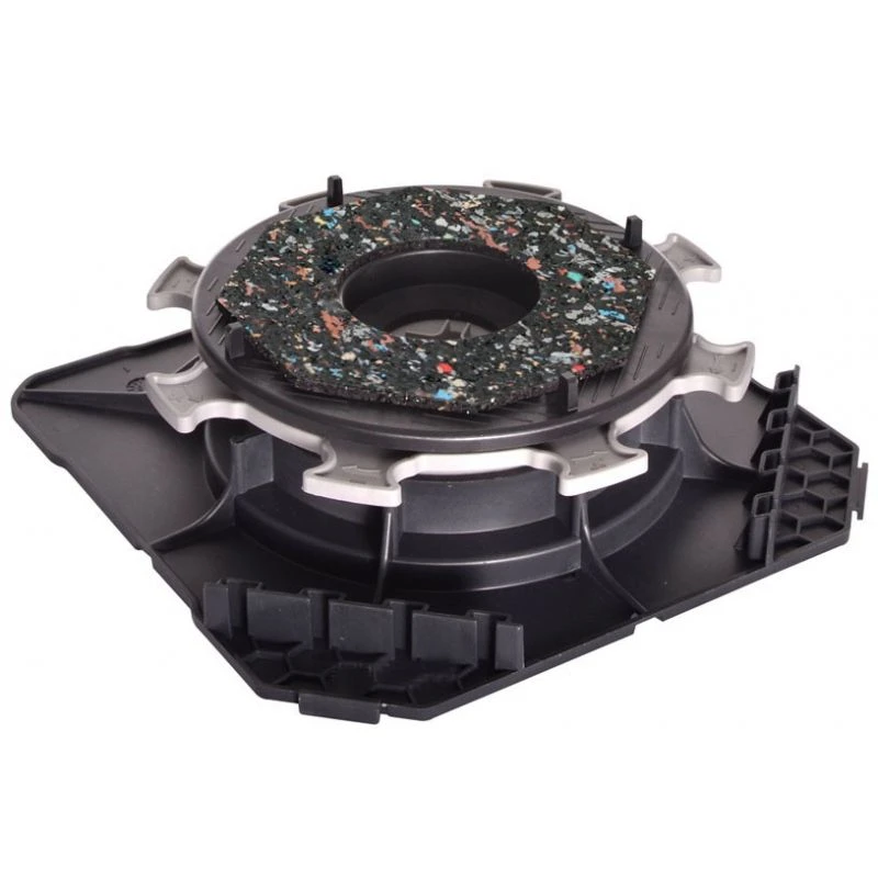Destiné à un usage piéton, le plot est réglable en hauteur de 40 à 55 mm. Le réglage du plot s’effectue de 2 manières : manuellement en tournant la bague de réglage avant la pose et après la pose du revêtement en utilisant la clé spécifique.
